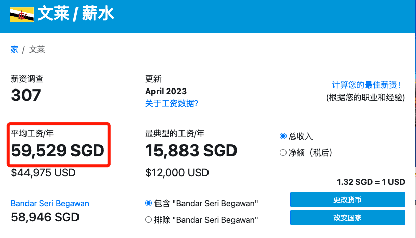 文莱的平均月薪为约4800新币成为东南亚第二高薪国家。