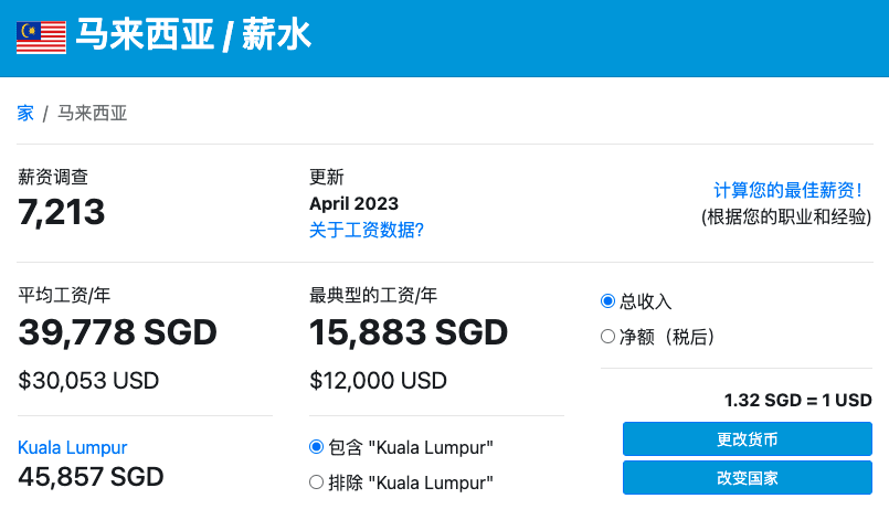 而马来西亚与前两个国家的差距就太大了,平均月新为约811新币位列第三。