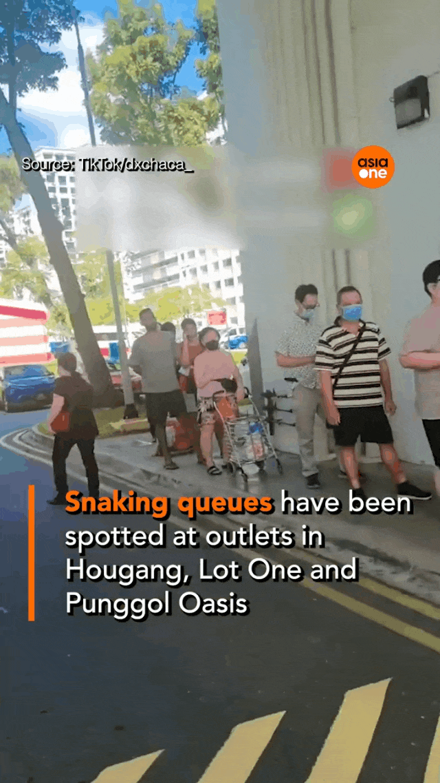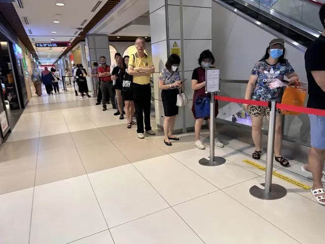 新加坡裕廊IMM商场里大家都无心购物,纷纷排起队去买彩票!