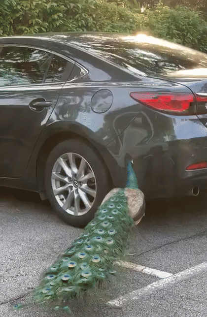 孔雀发起“疯”来连汽车都不放过,来源:Twitter@smacdonald__