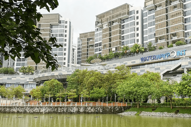 你接下来将经过Waterway Point,榜鹅地铁站外的这个大型商场。