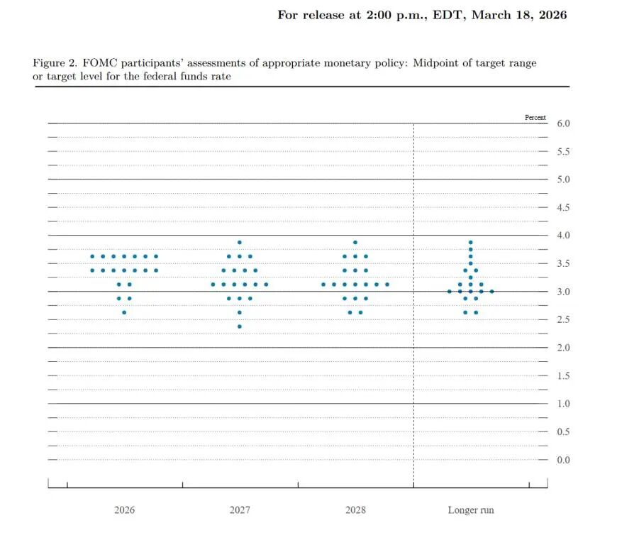 尽管不确定性加剧,与会官员们仍再次暗示未来可能会有降息。备受关注的“点阵图”显示,官员们预计今年将有一次降息,2027年还将再降一次,但具体时点仍不明确。
