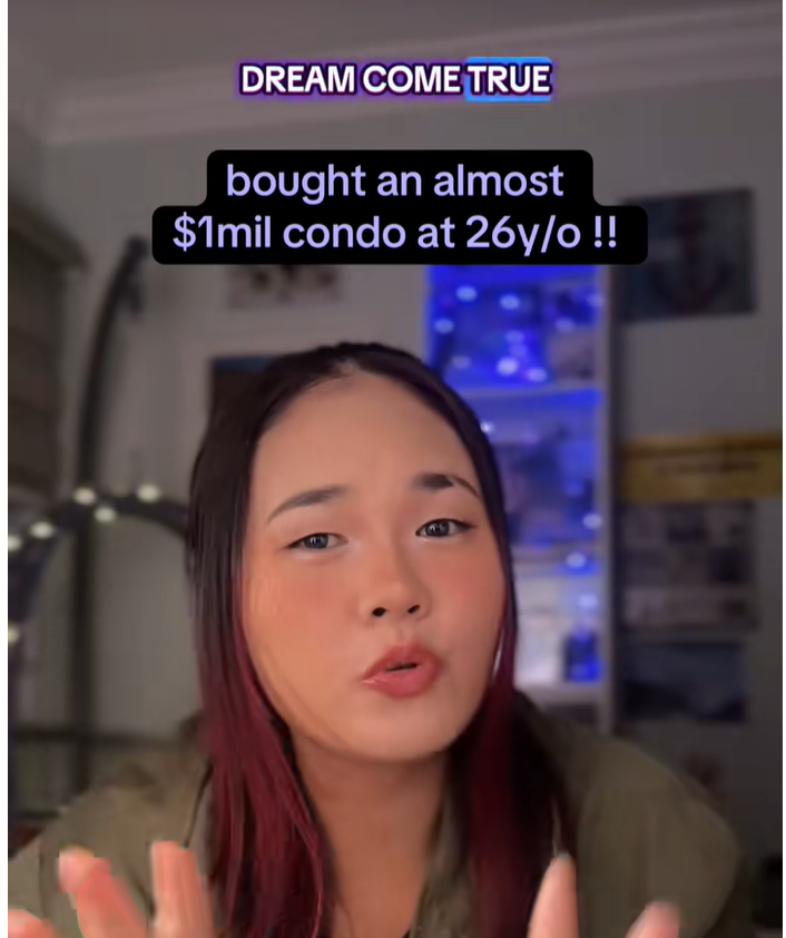 她发了一条视频,说自己在 26 岁 的时候,一个人买下了一套接近 S$1,000,000 的公寓。