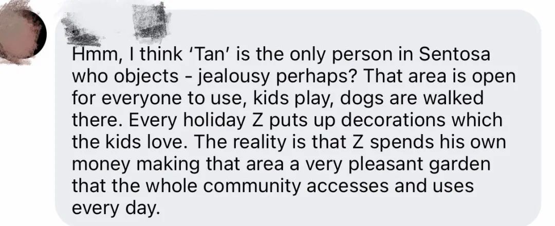 记者还联系了圣淘沙湾度假村管理 SCRM,询问多户业主是否获得了 SCRM 的批准来装饰公园?
