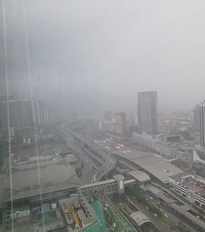 有人贴出自己从高楼拍摄的照片,一个看似交通枢纽的区域也被笼罩在大雾之中,远处的雾气像是要扑过来似的......(不过椰子仔细辨认后,不确定这是新加坡的那个区域,有知道的小伙伴可以帮忙指出吗?)