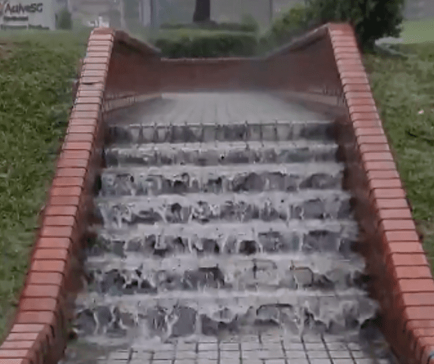 道路旁的水沟也不堪重负,水位疯狂上涨,远远望去甚至有要溢出的趋势!