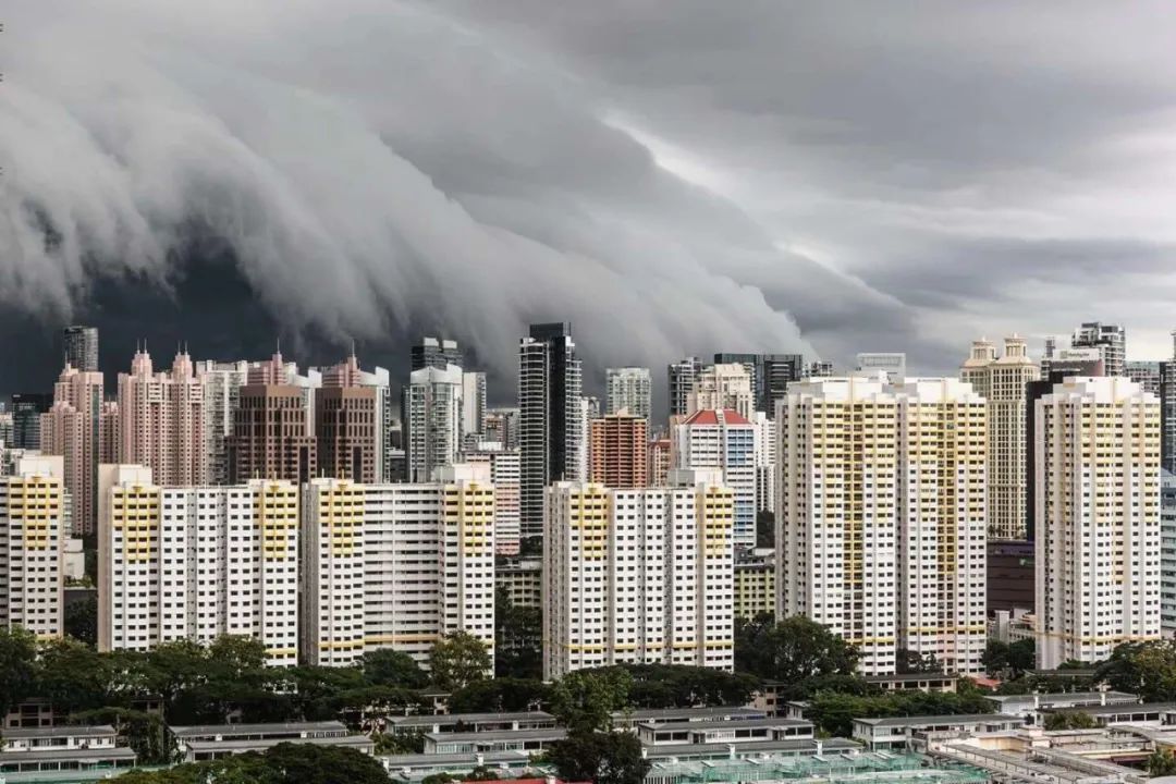 2020年11月2日,新加坡下过一场特大暴雨,当时席卷而来的云层犹如海啸一般,瞬间将市中心掩盖住了。
