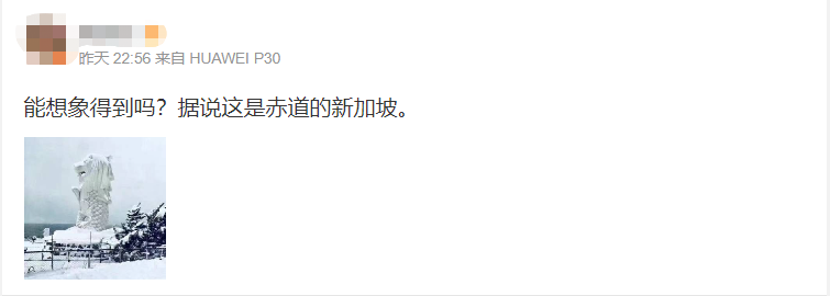 气温骤降后,新加坡仿佛进入了冬季,这时有网友翻出之前爆火全网的“新加坡雪景图”上传至网络,立马引来很多人的共鸣。
