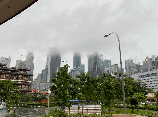 而其他在网友们镜头下的新加坡,也一改往日闷热火辣的风格,而是变得“娇羞”起来,好多建筑物都被笼罩在大雾之中。