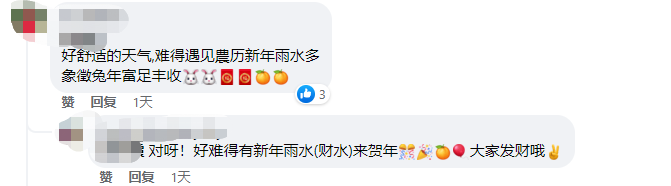 不过大部分网友还是比较喜欢下雨的,他们表示:水为财,兔年一到就开始下雨,今年一定发发发!