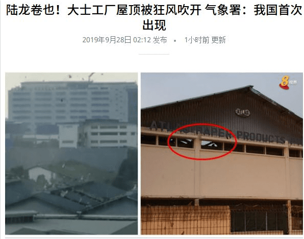 2019年9月27日,新加坡大士一带惊现罕见的龙卷风。这是首例也唯一一次的龙卷风,当时大士工厂屋顶都被风给掀翻了!