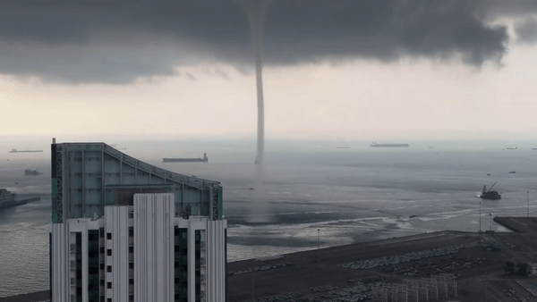 除此之外,某一年,就在新加坡的离岛不远的外海,还出现了全球罕见的“龙吸水”现象。(也叫水龙卷)