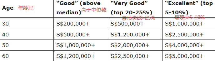 在这个阶段,一个不错的净资产规模,包括公积金和房产净值,大概在60万到150万新元之间。