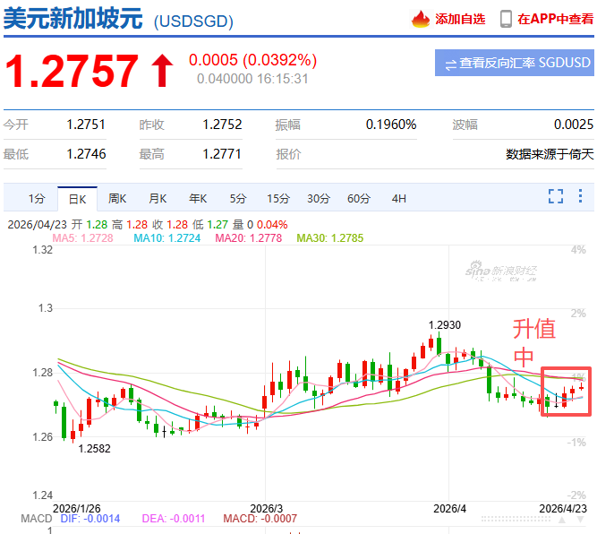 美元兑新币汇率从本月中开始上涨