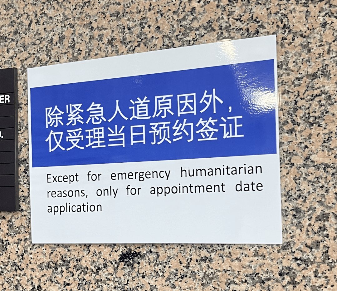 附上当时的现场图,来来往往的都是办赴华签证的人↓