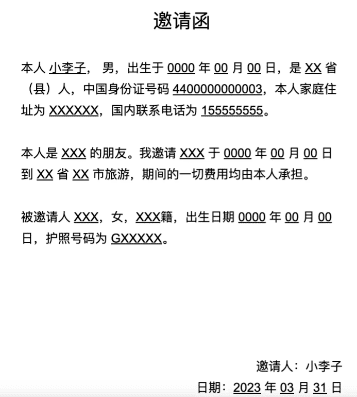 5️⃣-1 中国公民邀请函 (如果是住在中国的朋友家就需要让你的朋友提供)