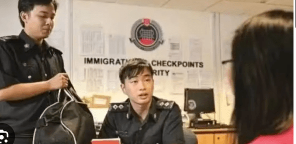 一名中国旅客以免签方式入境新加坡时,被移民官员带到一旁接受询问。