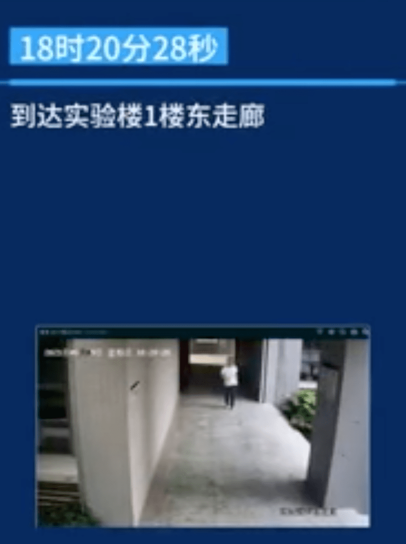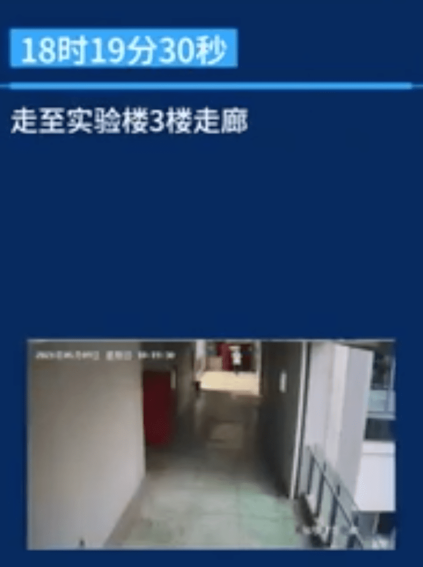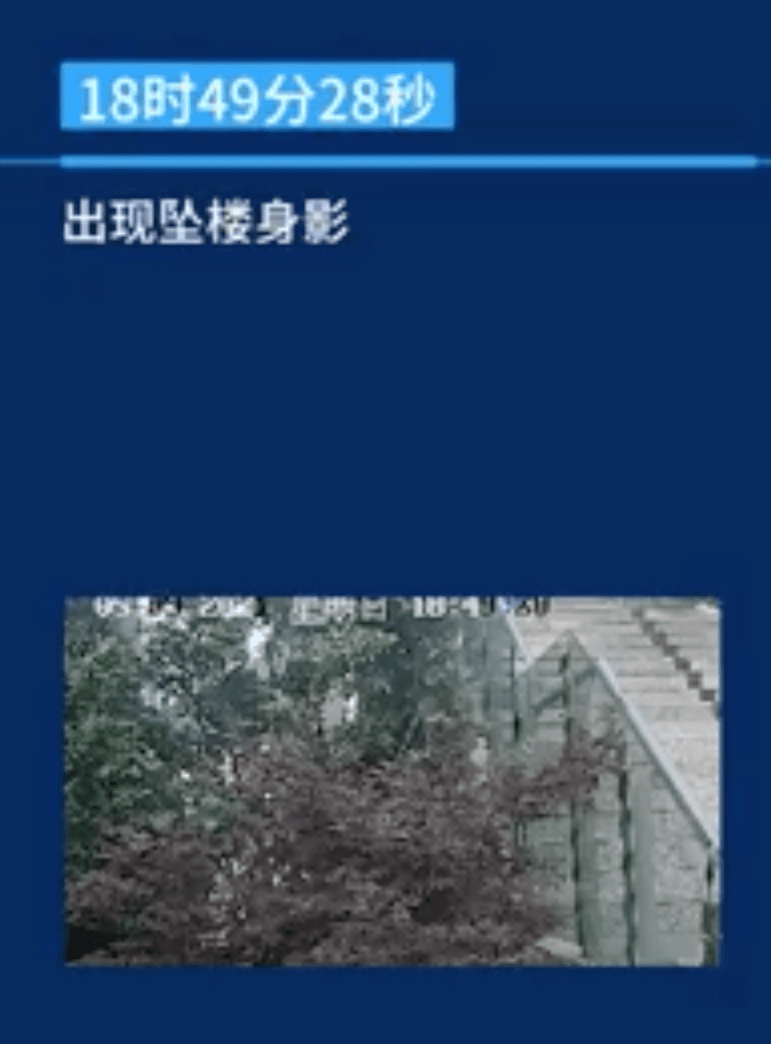 到了18点49分28秒,林同学的坠楼身影出现在了镜头之中。