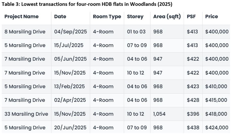 值得注意的是,这三个市镇均位于西部区域,且是仅有的四房式组屋平均转售单价低于540新元/平方英尺的地区,这表明注重预算的购房者或可考虑西部区域来满足住房需求。