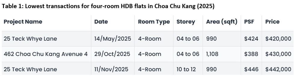 根据建屋局数据,蔡厝港今年迄今已售出433套四房式组屋,价格范围在420,000新元至690,000新元之间。其中三套以低于450,000新元的价格售出,两套位于德惠巷25号。值得注意的是,德惠巷其中一套单位就在本月早些时候刚刚售出。