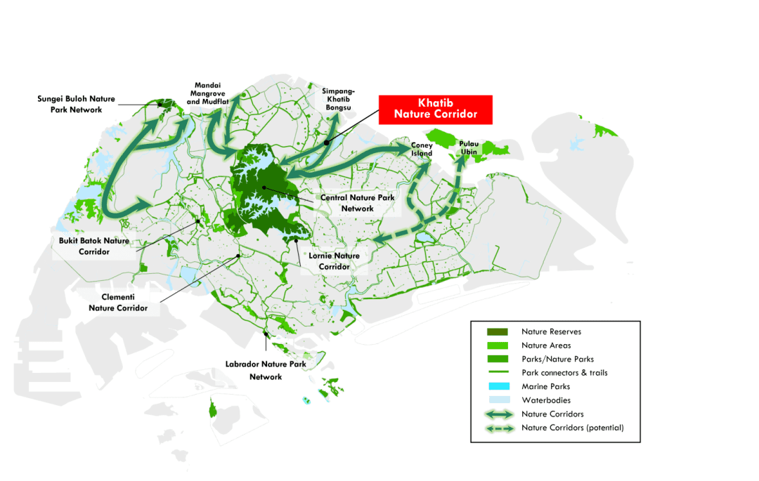 Khatib自然走廊将是第一个建立的,包括三个新公园--Nee Soon自然公园、Miltonia自然公园和Lower Seletar水库公园的延伸。