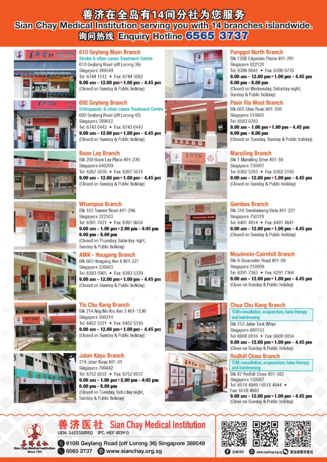 善济医社除了不分种族和宗教为该区的居民提供免费的中医问诊及低收费的治疗,也积极与宏茂桥集选区基层组织携手合作,主办多次的关怀与分享活动;为租房低收入家庭和有需要的年长者提供食品和生活用品的爱心礼包,同时献上我们对他们的关爱与祝福。