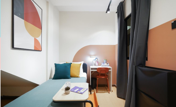 · 单间配齐家具:床 + 衣柜 + 书桌,一应俱全,拎包即可入住。
