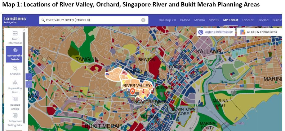新加坡划分为55个规划区,其中,River Valley规划区属于新加坡中部区域的一部分,夹在乌节路和新加坡河之间。