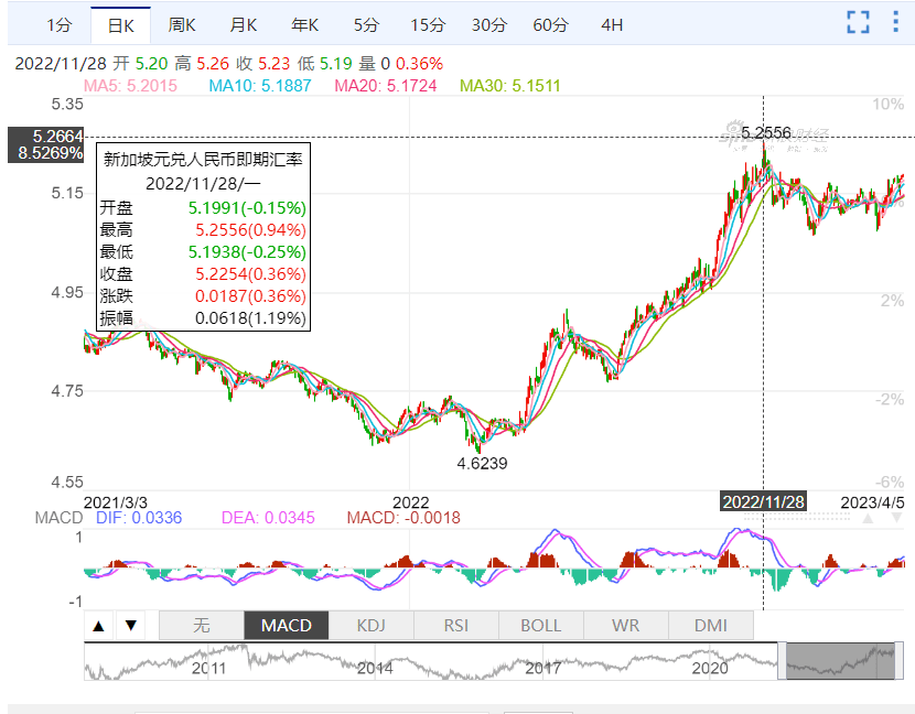 近十年新币兑换人民币的最高汇率是在去年11月底创下的