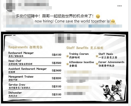 新加坡的招聘市场也越来越卷,还曾有知名连锁餐厅开出3100新币的月薪招洗碗工!