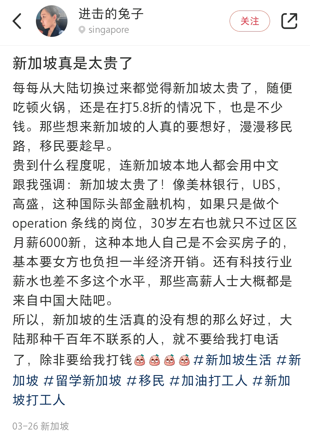 不少在新加坡生活的网友,都表示赚的钱有些入不敷出,让很多本地人都有些难以忍受了。