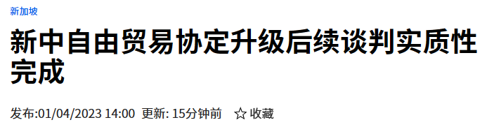 据本地《8视界报道》报道,中国和新加坡自贸协定升级后续谈判实质性完成!