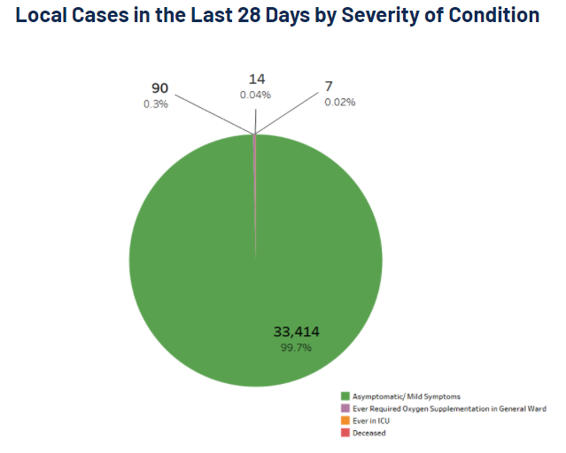 我们来看看新加坡过去28天的数字,99.7%的感染者都是轻症或者无症状。