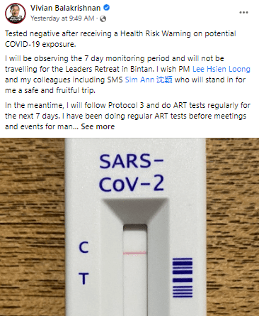 但他昨天在FB发文说,自己不幸接到了健康风险警告,意味着可能与确诊者有密切接触。
