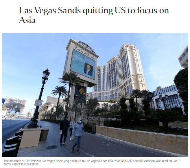 很明显金沙集团要逐步放弃美国市场,而将精力更多地集中在业务快速增长的亚洲市场,其中包括新加坡,以及全球最大的博彩业中心--澳门。
