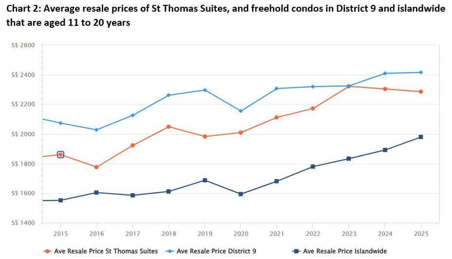 St Thomas Suites的平均转售价格在2020年突破每平方英尺2,000新元大关,此后至去年已上涨13.7%,达到每平方英尺2,286新元。