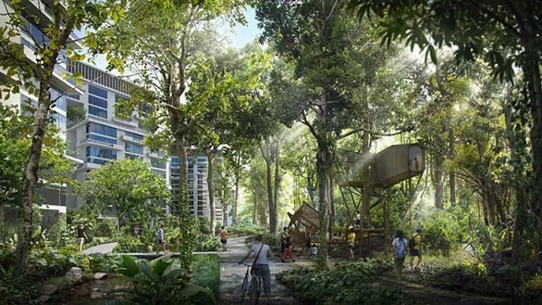 登加花园还会是第一个没有汽车的HDB小镇,旁边挨着郁郁葱葱的绿色公园。