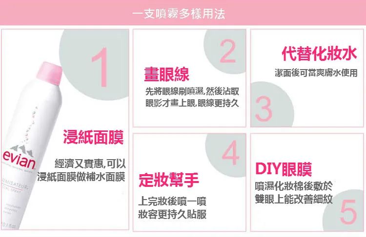 推荐:经典老牌依云水,喷雾细腻、矿物质微量元素补充,敏感肌可用,多功能用法无敌圈粉!超级适合晒后湿敷,镇定舒缓肌肤!如果有小伙伴出国去冷的地方,突然降温皮肤不适也能用依云水退红!随时随地可喷,滋润肌肤效果立竿见影~