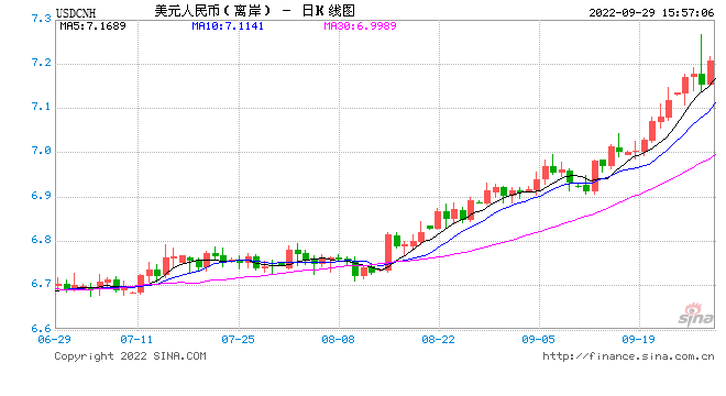 在岸市场也同样疲软,即期汇率开盘报7.18,随即跌破7.20关口,当日更一度跌破7.24关口,创2008年1月以来新低。