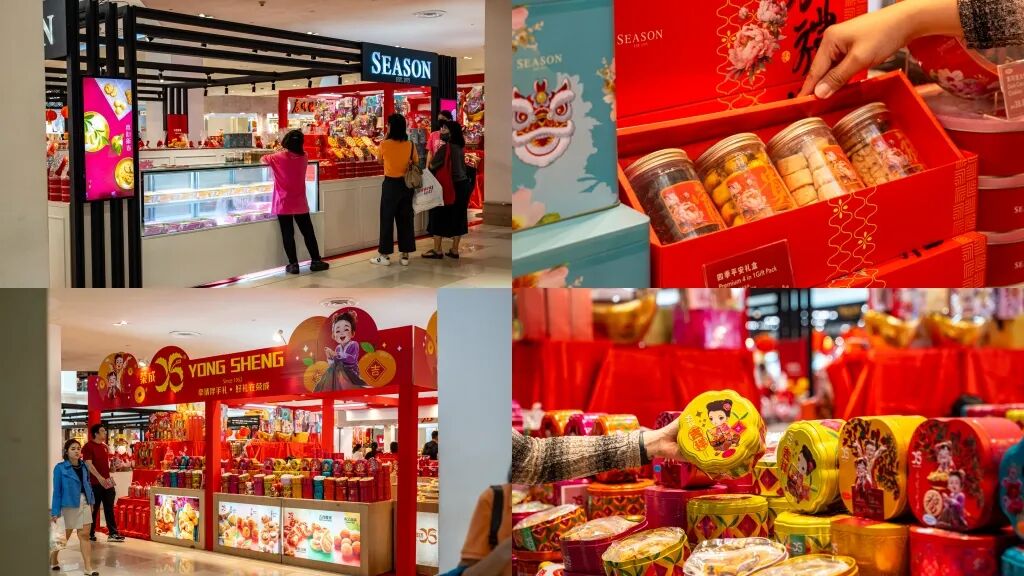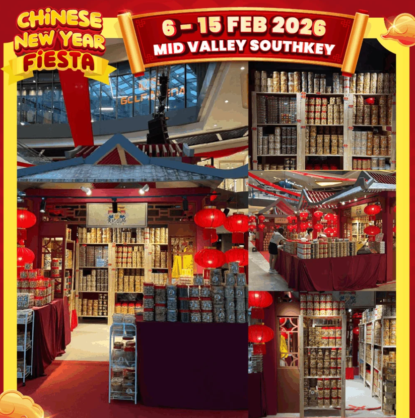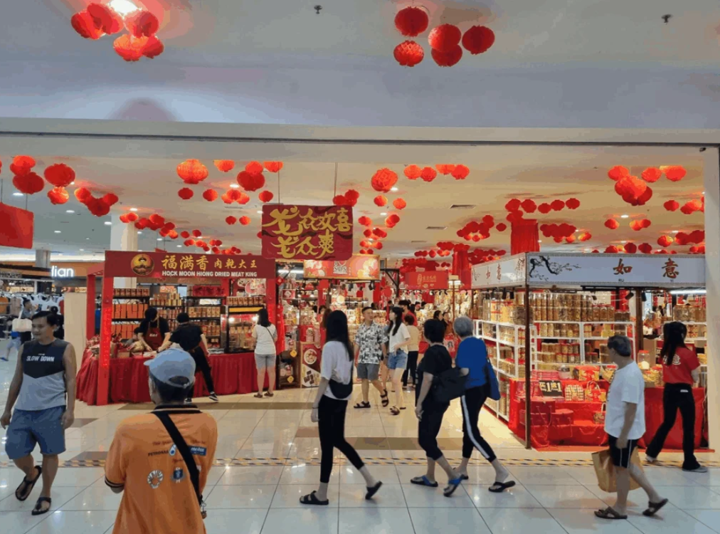 Sutera Mall 是新山大型春节市集之一,设 100 个摊位、涵盖 60 余个品牌,一站式购小吃、礼篮等。