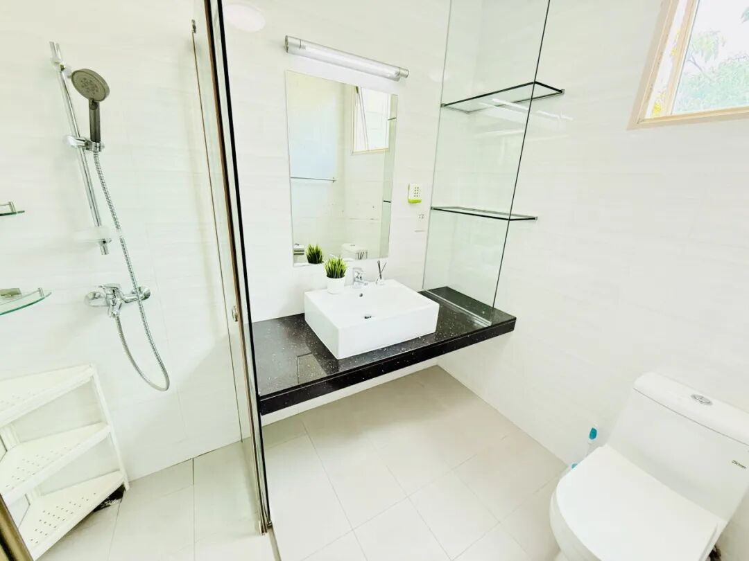 落地窗泳池景、每次换租换全新床垫、静音空调、干衣机、高速WiFi。