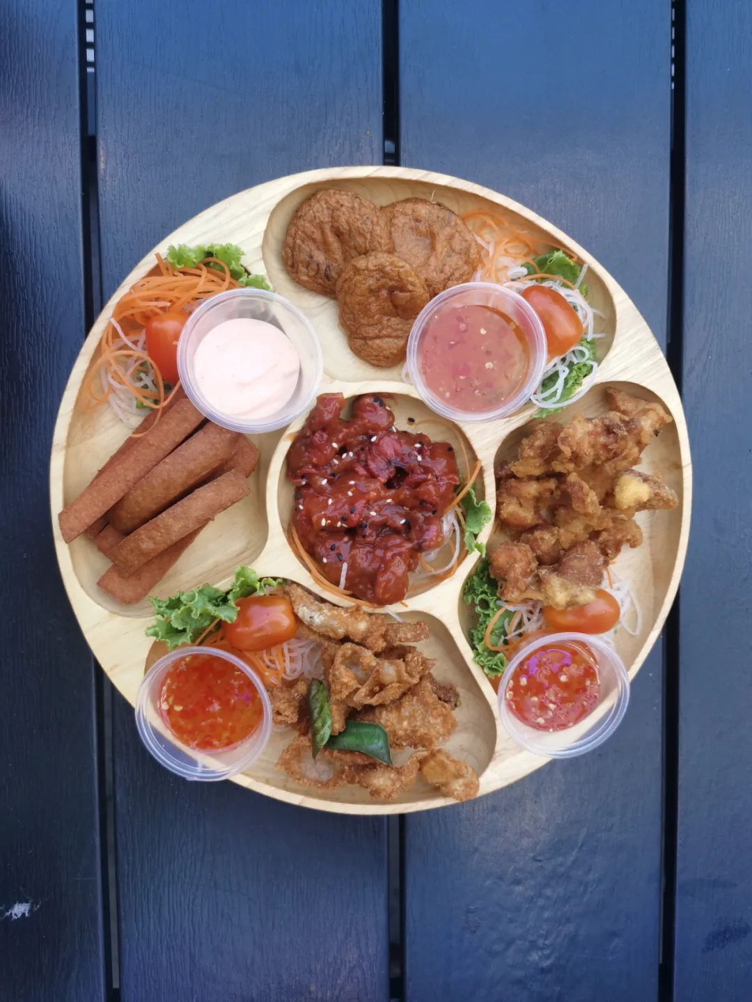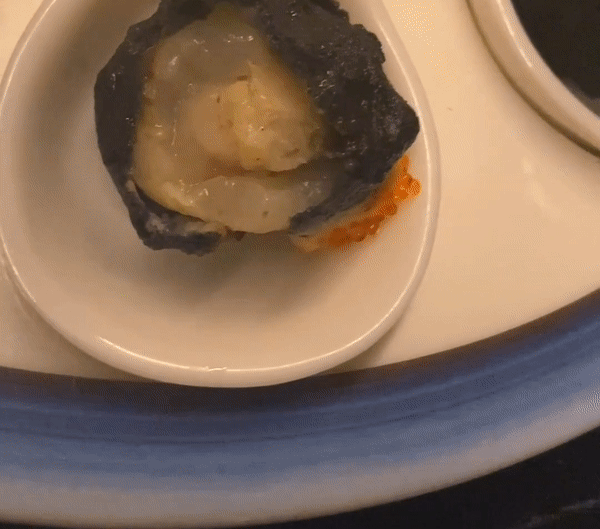 搭配上明太子和飞鱼籽配蛋黄酱,一口咬下去,好吃的胃馅用于既有新鲜的荔枝和嫩滑的鸡肉融合,味蕾一下子就被打开了。