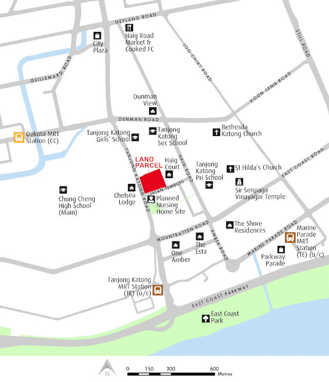该项目位于丹绒加东路与Jalan Tembusu交界处,距离未来丹绒加东地铁站,步行距离大概5分钟,地铁车程到滨海湾站约10分钟。