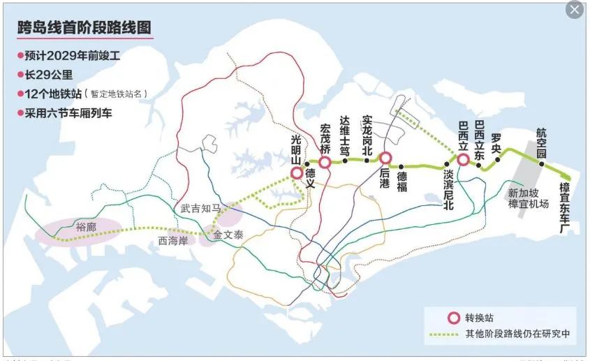 目前,新加坡政府就有公布跨岛线第二阶段将于明年动工!预计将在2032年正式开跑!