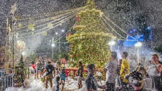 - 设两个圣诞村,含市集、嘉年华项目及降雪秀,还有同步音乐、酒店住宿套餐,12 月 24 日晚将举办圣诞夜街头派对。