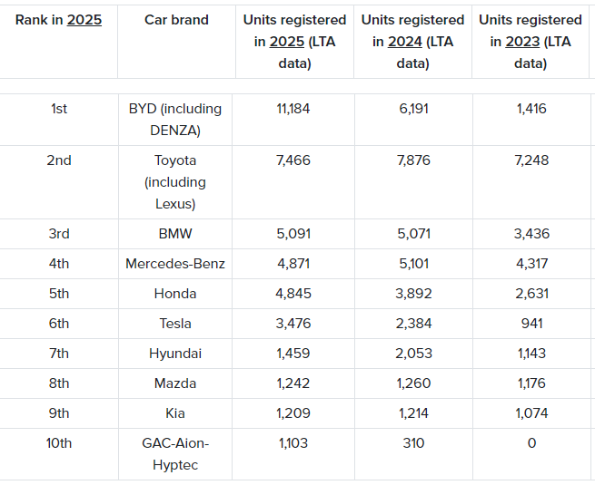 表现更加出色的是比亚迪。比亚迪2025年以近1.2万辆新车注册量,蝉联新加坡最畅销汽车品牌,市场占有率约21.2%,销量同比激增超80%。