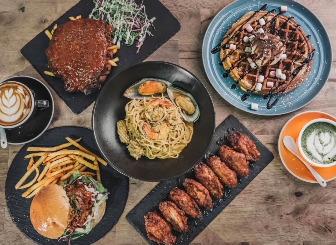 这里供应亚洲与西式餐食,叁巴鸡肉汉堡、椰子糕等菜品口味出众,饮品选择多样,店内的游戏机也为用餐增添了趣味。