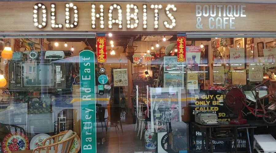 走进SAFRA 花柏山的Old Habits Cafe,店内摆放着老式掌机、黑胶唱片与橙色投币电话,处处带着复古气息。