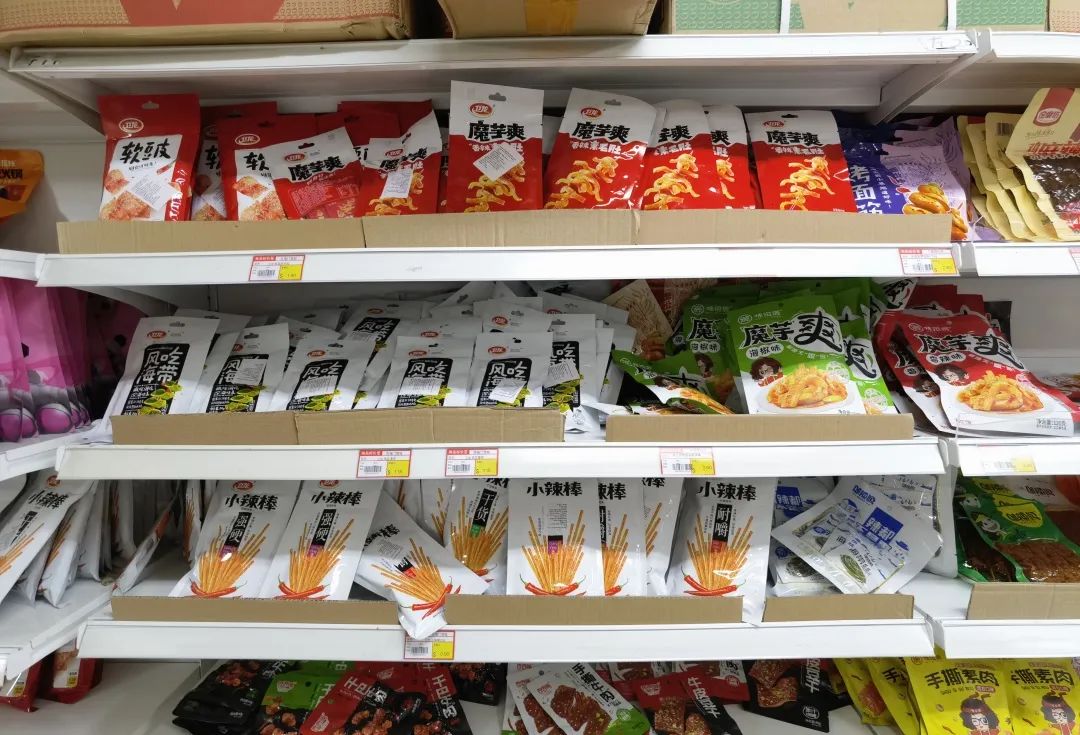 更有零食、调料、糖果、点心、各种速食面条米粉、榨菜泡菜、粮食原料、火锅配菜、冲泡饮料等等等等,排列布局。
