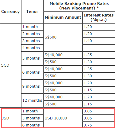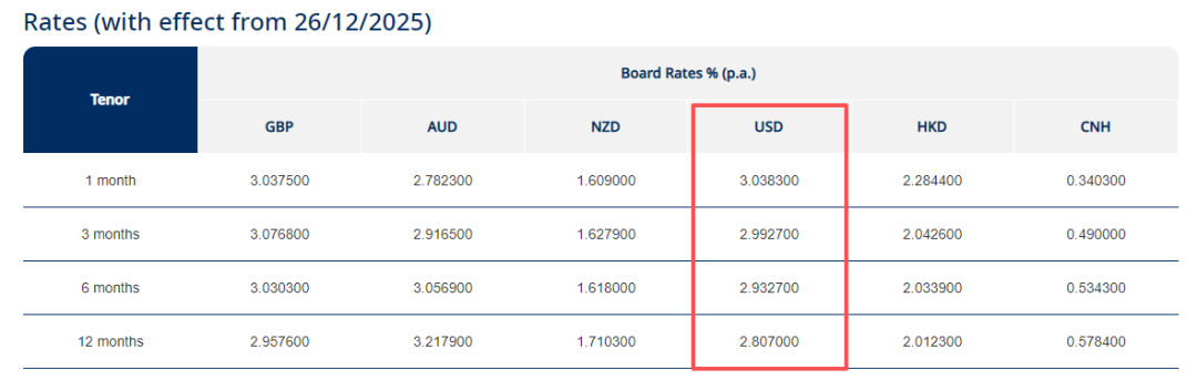新加坡最大银行——星展银行提供多币种外币定期储蓄,其中美元定期储蓄的利率最高,存两个个月最高3.53%!(但需存至少25万美元)